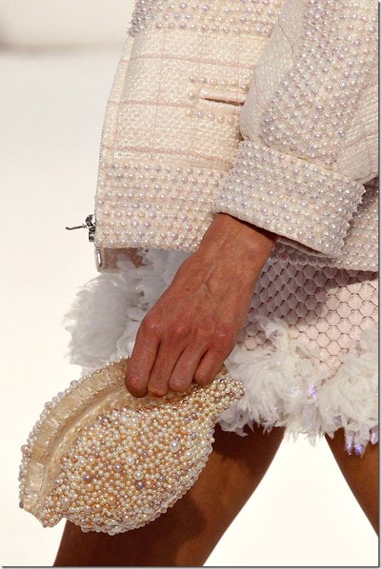 The dresses moving in a manner of algae and waves as if the fabrics were submerged in water, a totally unforgettable chic little black dress with a sharp collar and a few other structured pieces that were very Chanel, the textures of corals and nets, the haute couture pleating adding the lightness, generous sprinkle of pearls in most beautiful golden, silver and rose shades, purely perfect shell-shaped clutch bags, glowing make-up and white, coral or apricot coloured nails that added a very special “ta-dah” touch. Every single detail was a stunning masterpiece. I was glad that there were 80+ looks – I just didn’t want this show to end.