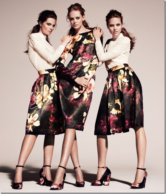 Loving the flower printed skirts and dresses that remind me of recent Erdem and Dolce&Gabbana collections, the white lace pieces and beading on the cropped light camel coloured jackets. The silk skirt is particularly tempting as far as my autumn wardrobe goes. I feel that the burst of burgundy, cream and gold would be just perfect.